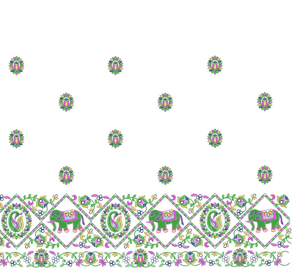 Elephant and peacock Figure concept haf haf saree Embroidery Design