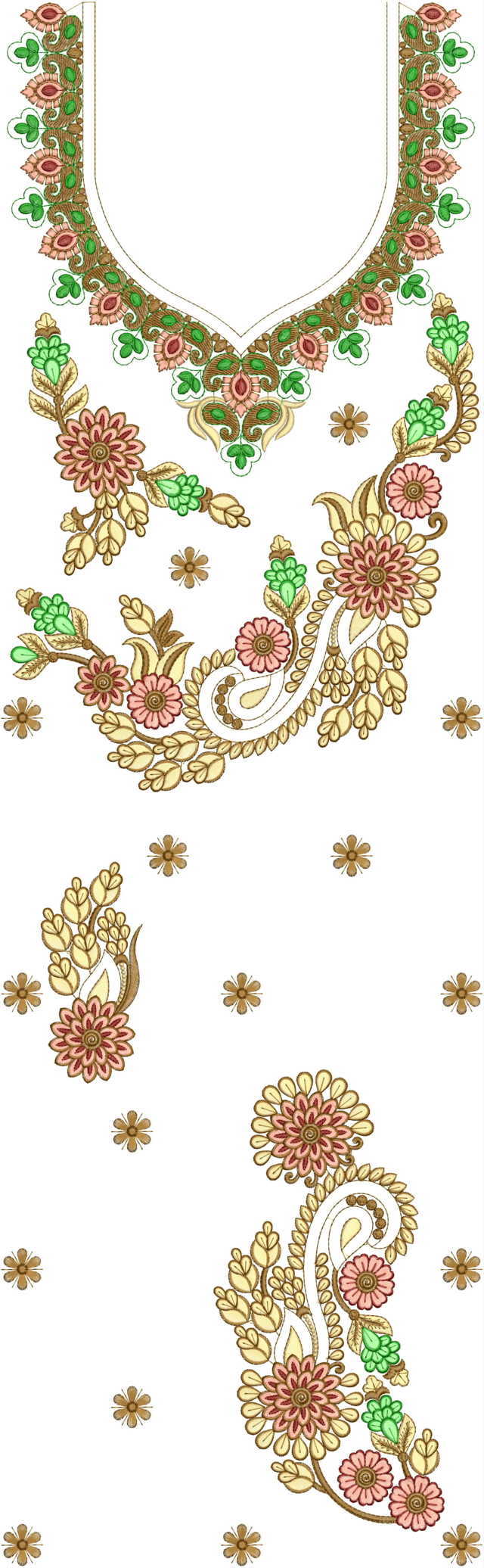 Fancy Neck butti lace Single head Top & Duppata Embroidery Design