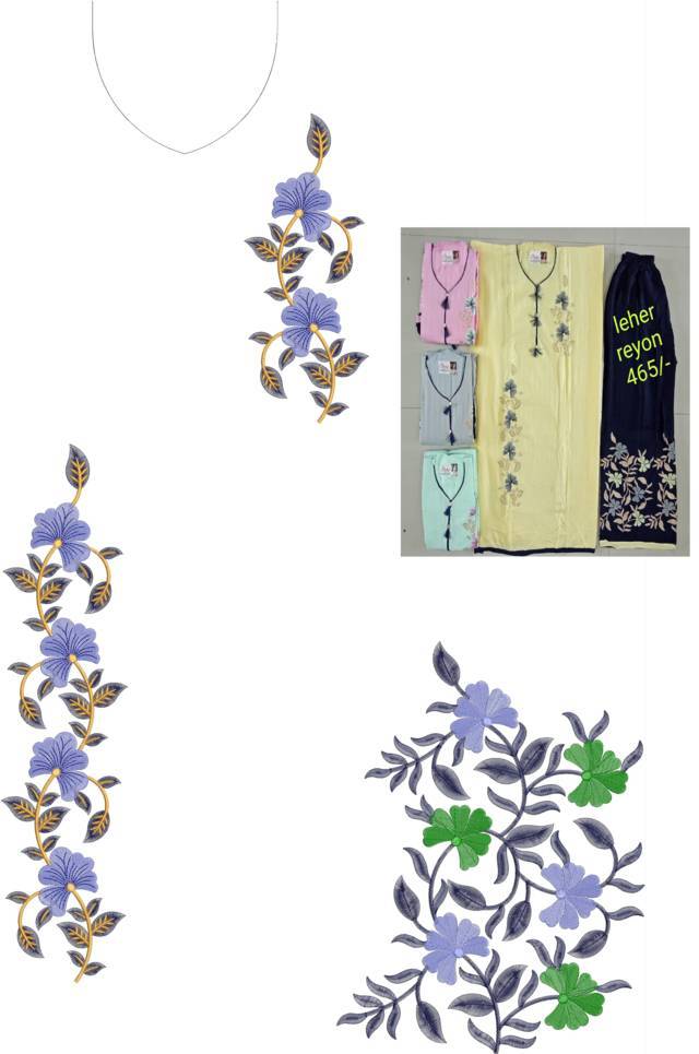 Fancy blooming flor colourful flowers Kurti &plazzo rmbroidery design