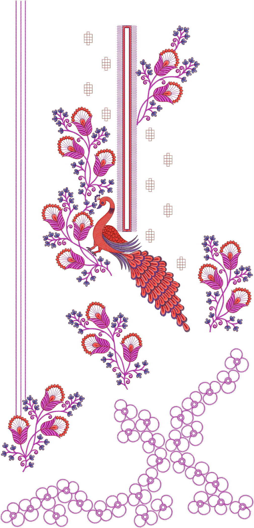 Fancy flowers peacock figure concept panjabi pakistani suit/duptta embroidery design