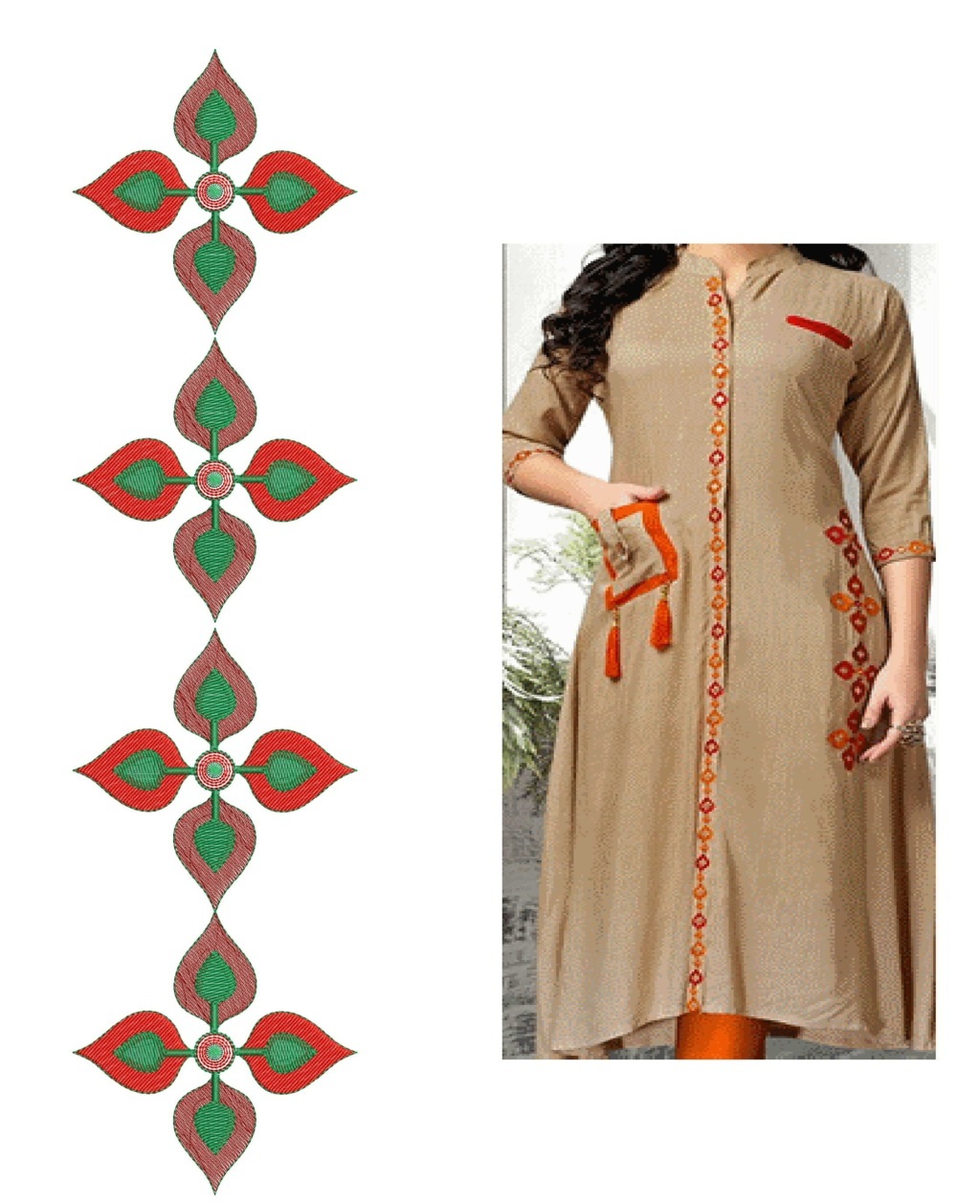 Fashinoable leaf concept kurti embroidery design