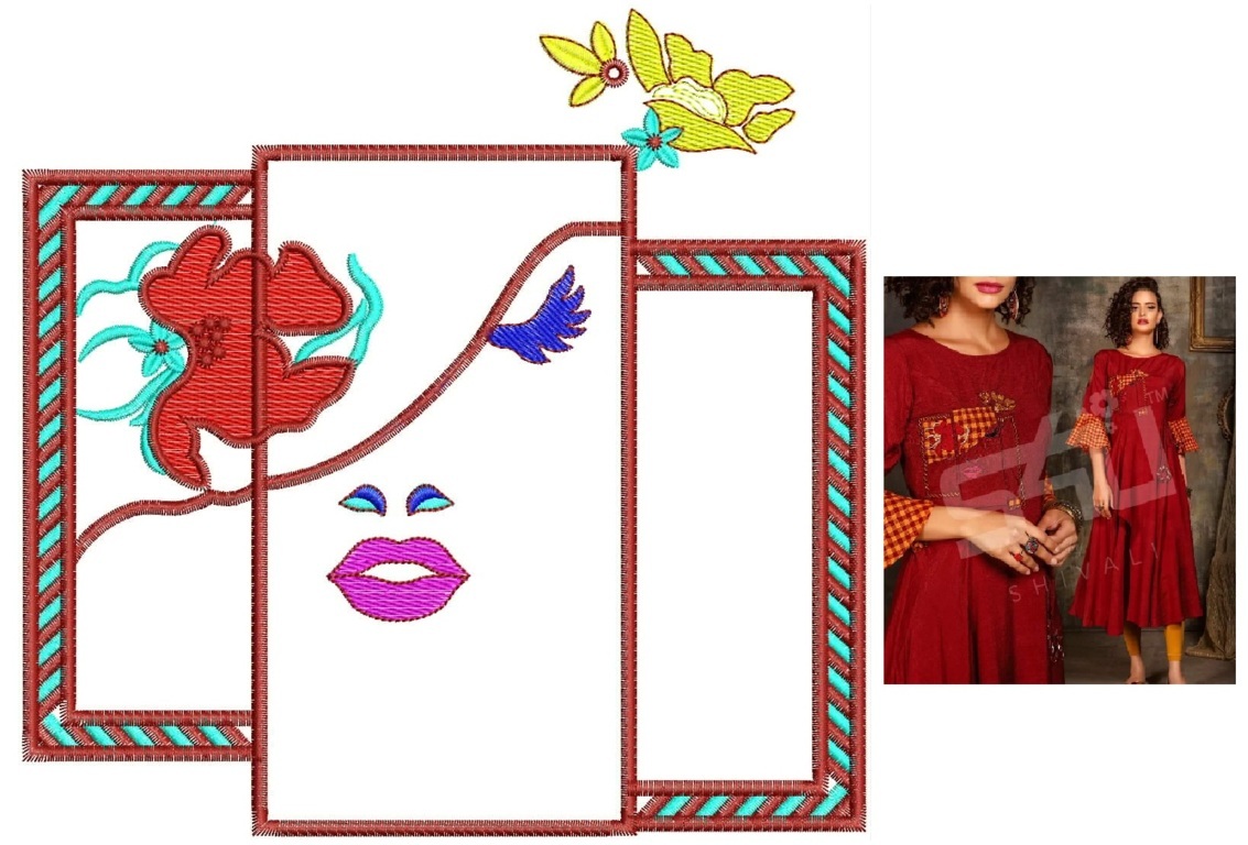Female figure concept kurti embroidery design
