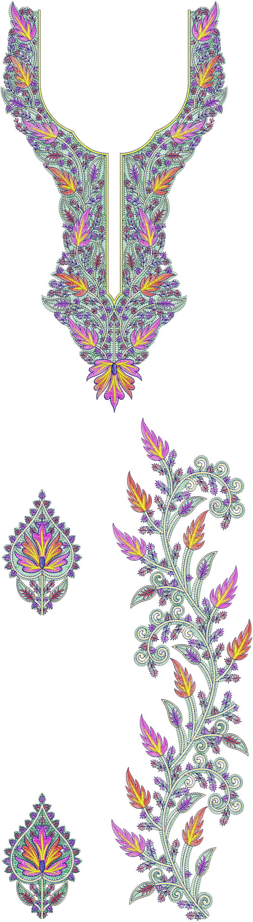 KASHAMIRI Single head Top & Duppata Embroidery Design