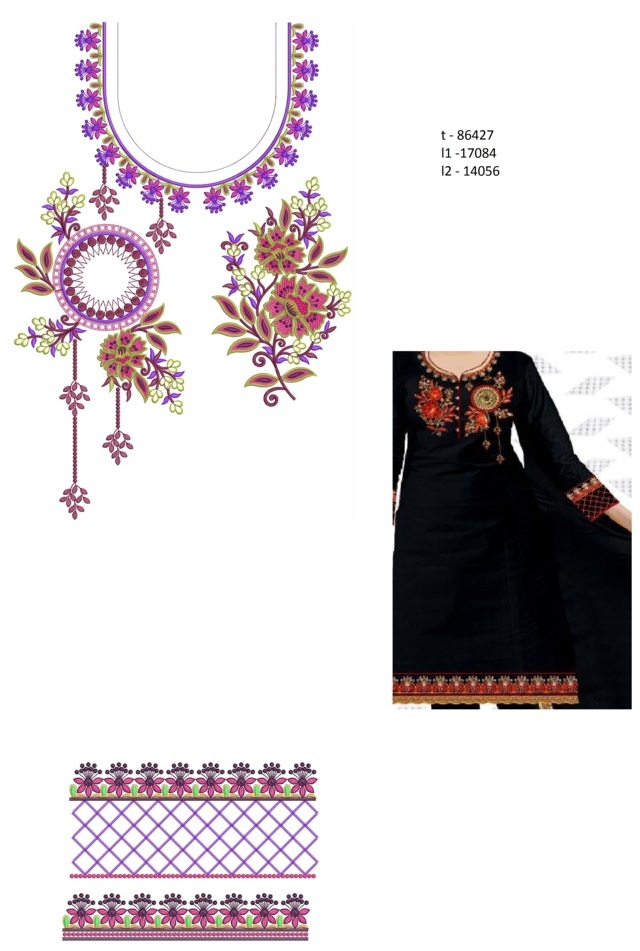 Kurti Neck butti lace Single head Top & Duppata Embroidery Design
