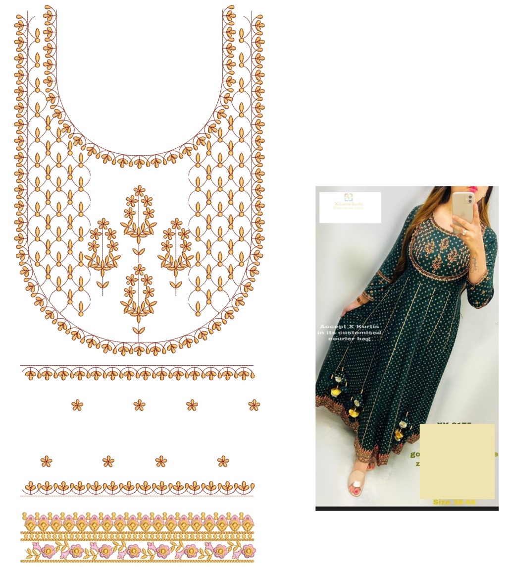 Kurti flowers Neck Embroidery Design