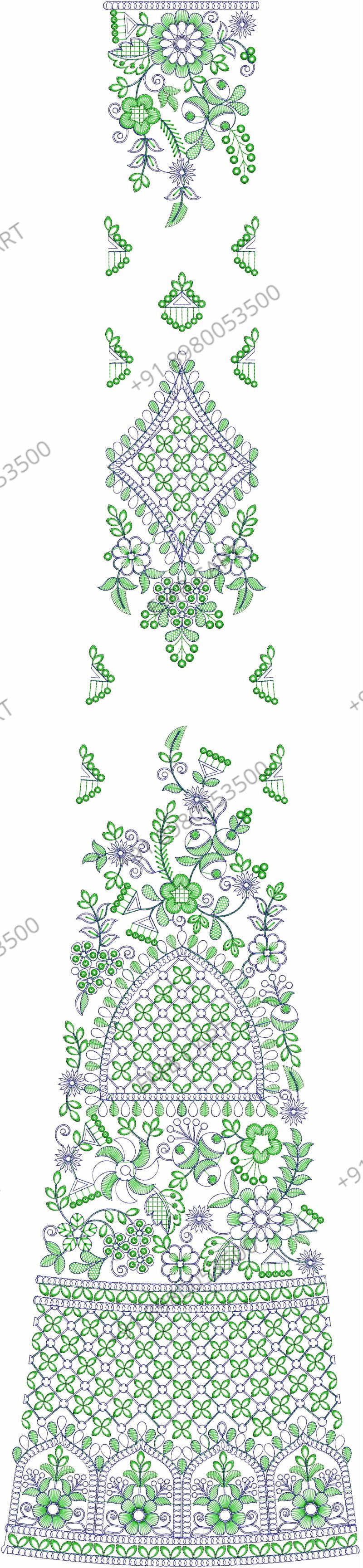 Low renj /halki Lehengha / kali Embroidery Design