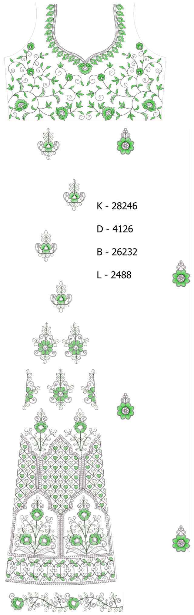 Low renj /halki Lehengha / kali Embroidery Design