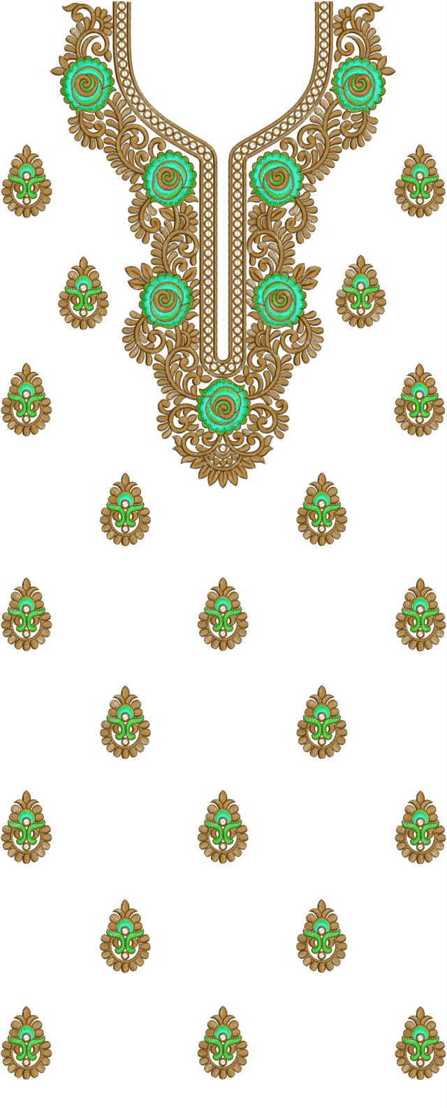 NECK-BUTTI Single head Top & Duppata Embroidery Design