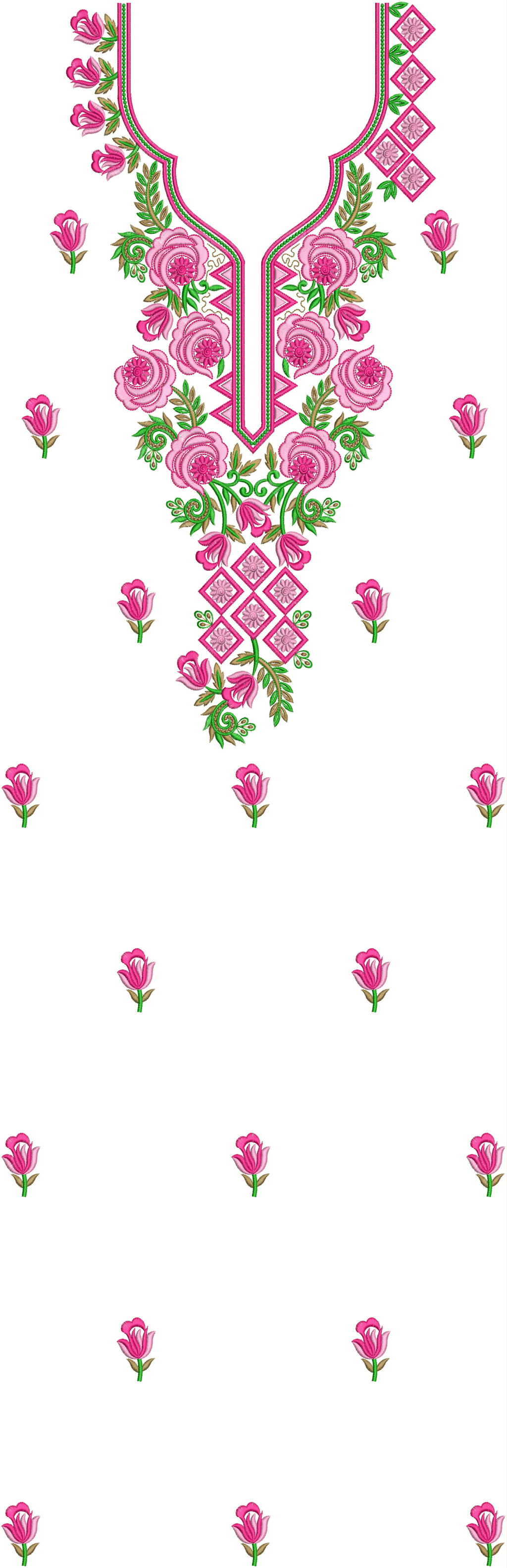 NECK-BUTTI Single head Top & Duppata Embroidery Design