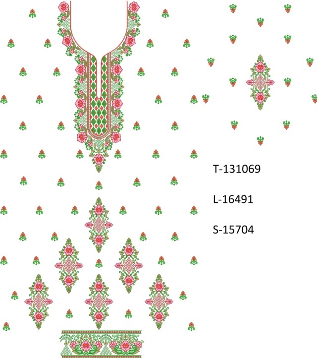 NECK-BUTTISingle head Top & Duppata Embroidery Design