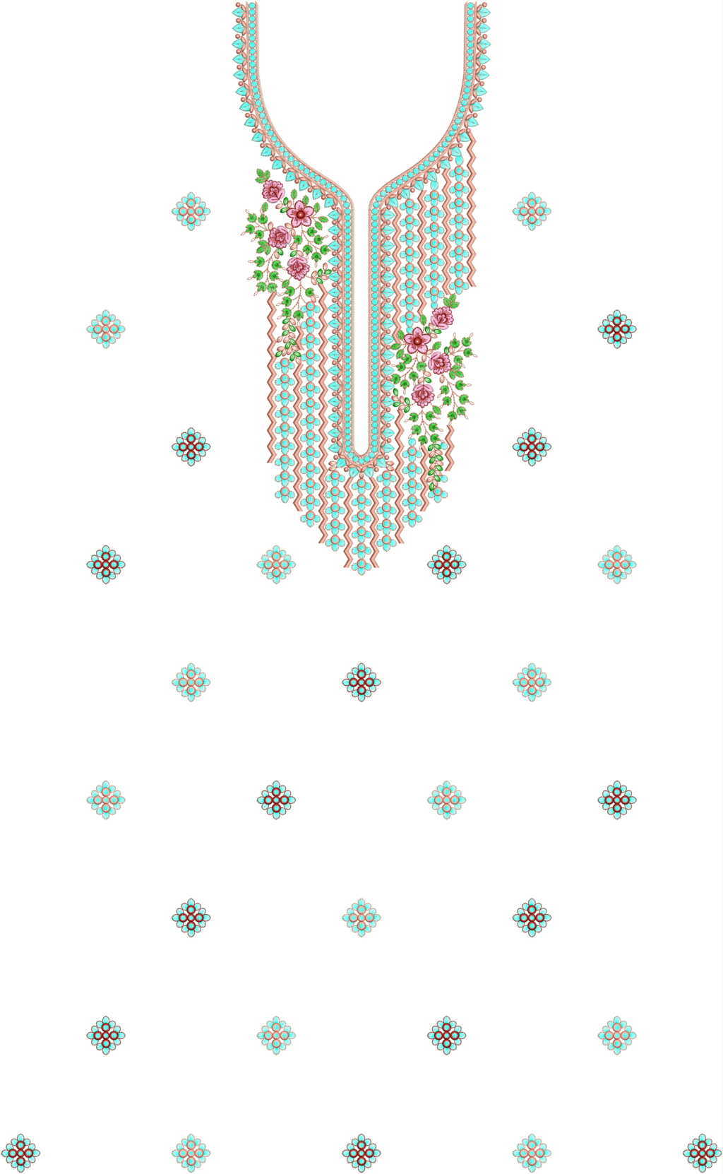 NECK-BUTTISingle head Top & Duppata Embroidery Design