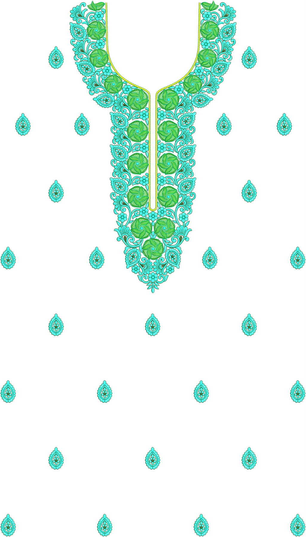 NECK-BUTTISingle head Top & Duppata Embroidery Design