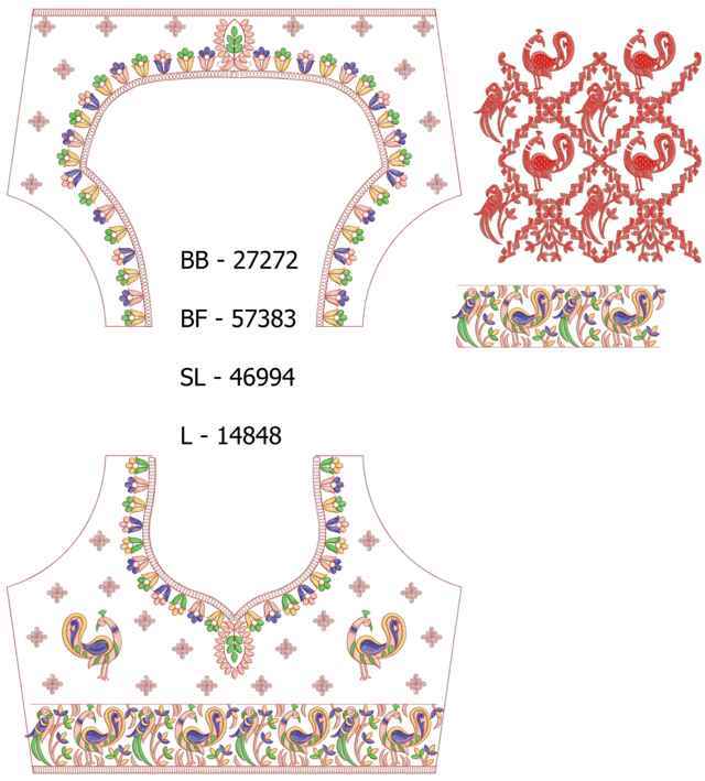 Peacock & parrot figure concept Blouse / Choli Embroidery Design