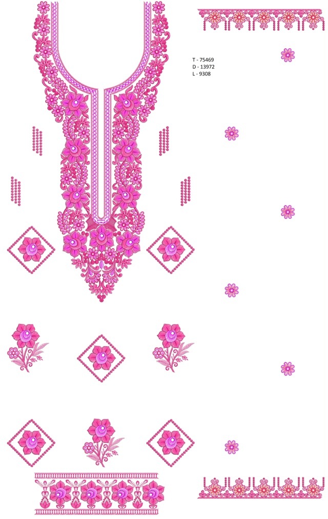 Rose flowers figure concept Neck butti lace Single head Top & Duppata Embroidery Design