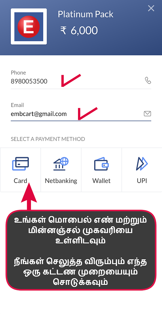 Step 4: Pay with Debit/Credit Card, UPI, Paypal Options