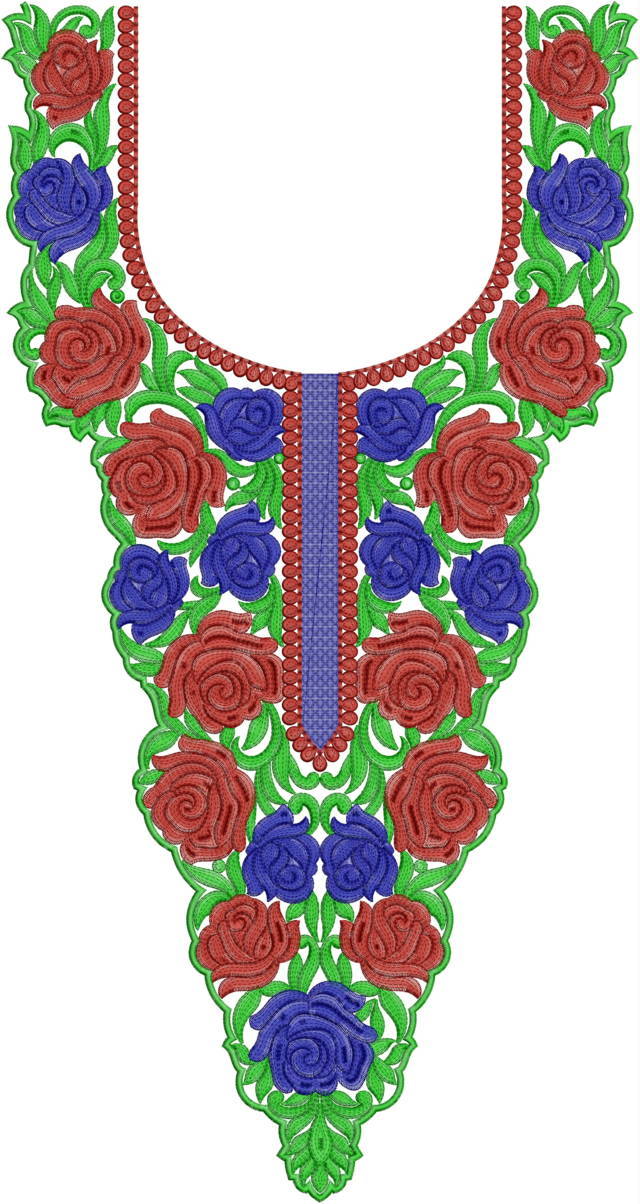 Woman Rose Flowers Neck Embroidery Design