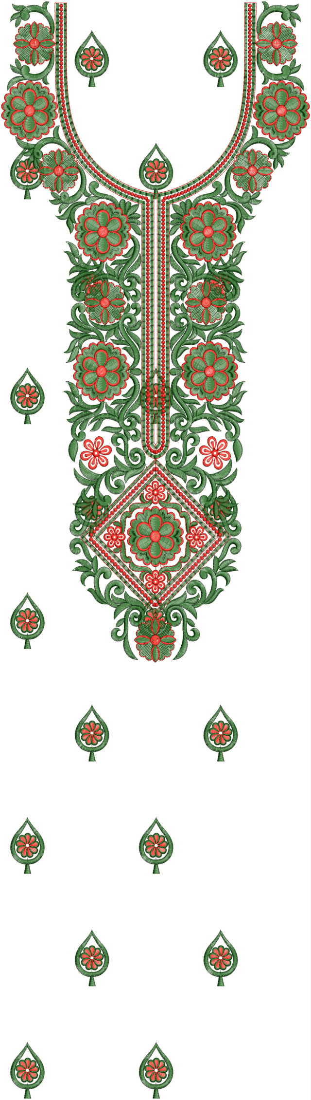 blade kating neck-butti Single head Top & Duppata Embroidery Design