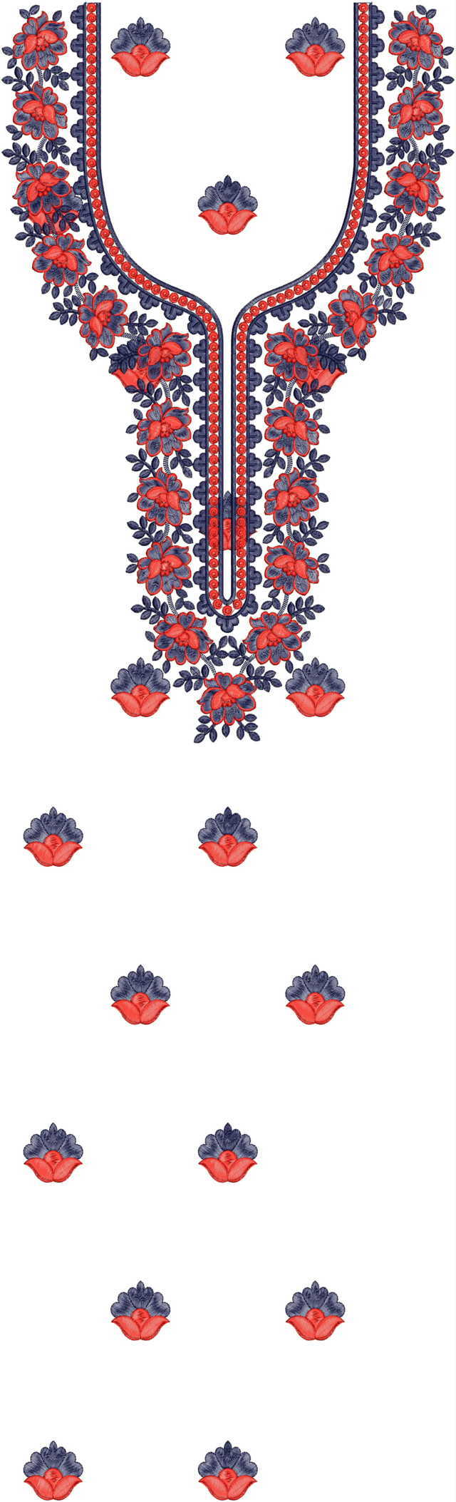 blade kating neck-butti Single head Top & Duppata Embroidery Design