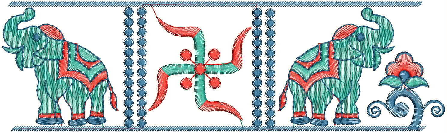 elephant & swastik figure concept lace embroidery design