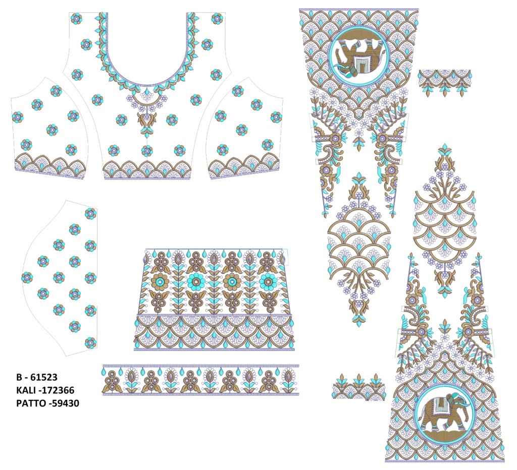 fancy elephant figure butta concept lehengha /kali embroidery design