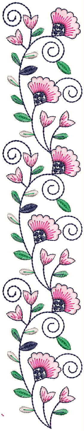 fancy flowers well border embroidery design