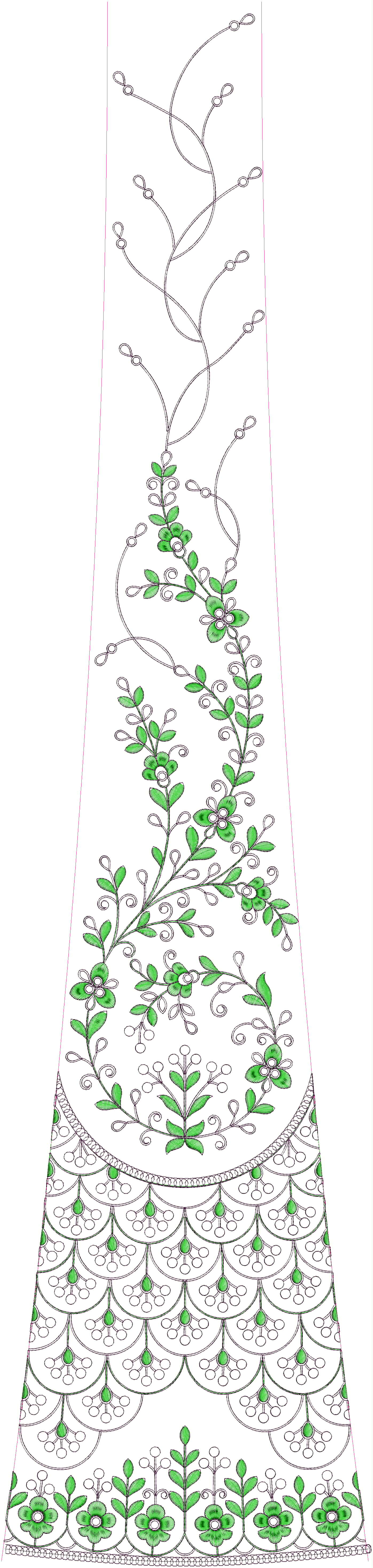 low renj garlish lehenga/kali embroidery design