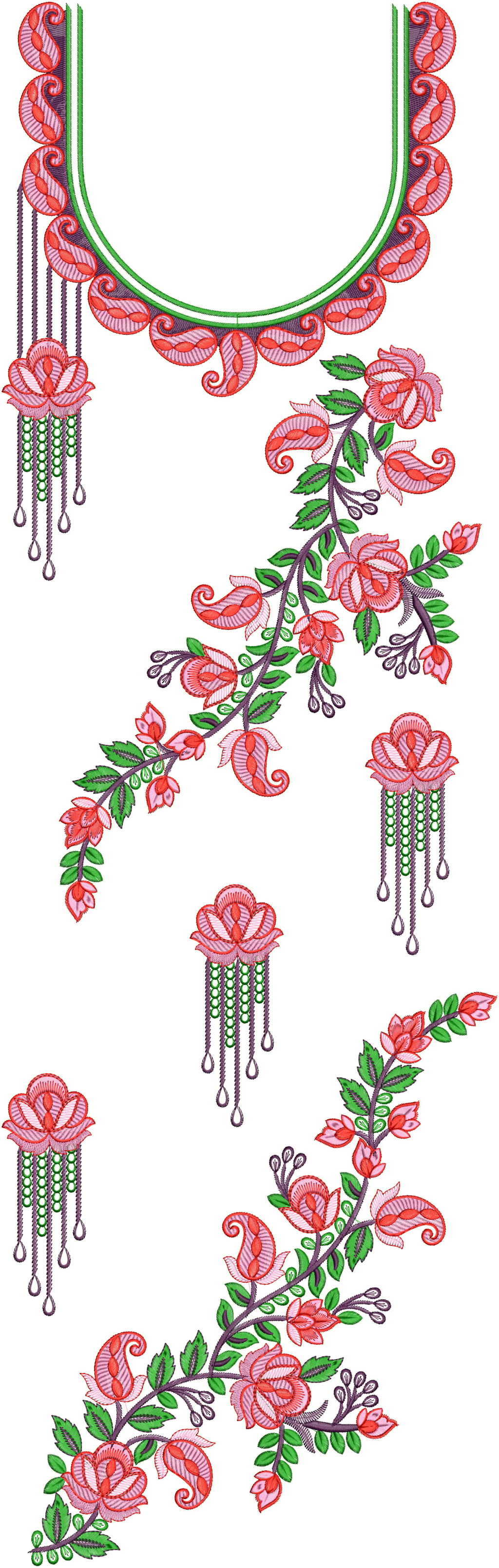 red flowers concept panjabi pakistani suit/duptta embroidery design